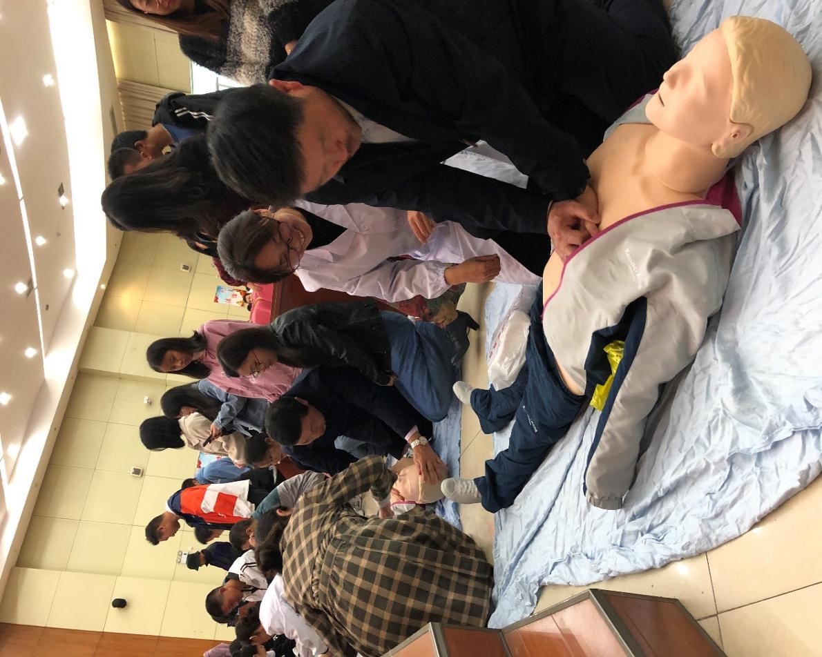 11月19日下午,我院举行了突发性晕厥应急演练及心肺复苏技能现场讲座。讲座由护理系支部书记刘丽华博士主持,我院党委书记鄢朝晖、院长何祖平、校资产与实验室管理处副处长蒋能胜、实验管理科科长罗万才及我院全体教职工、部分研究生及本科生观摩了此次演练并现场听取了讲座。